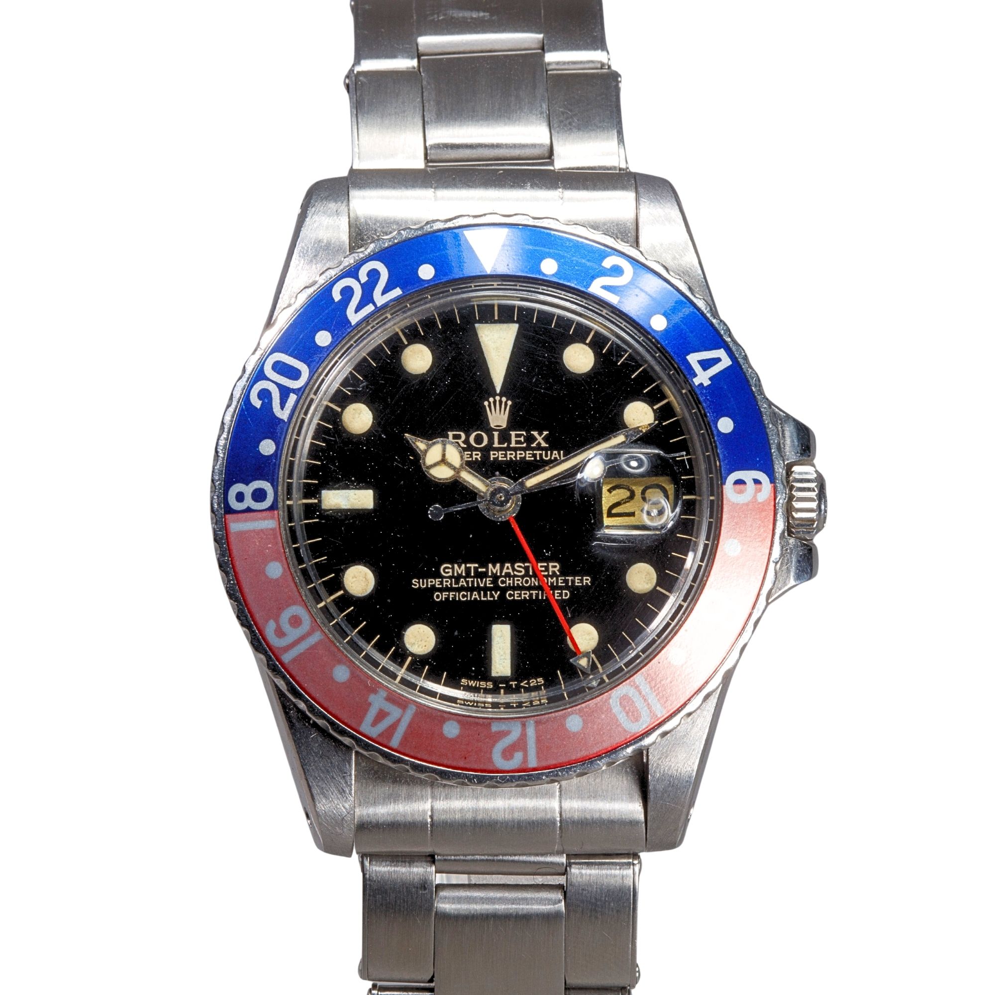 ROLEX GMT MASTER REF 1675 GILT PERFECT FULL SET WITH SPECIAL BACKCASE SERIAL INSIDE FROM 1966