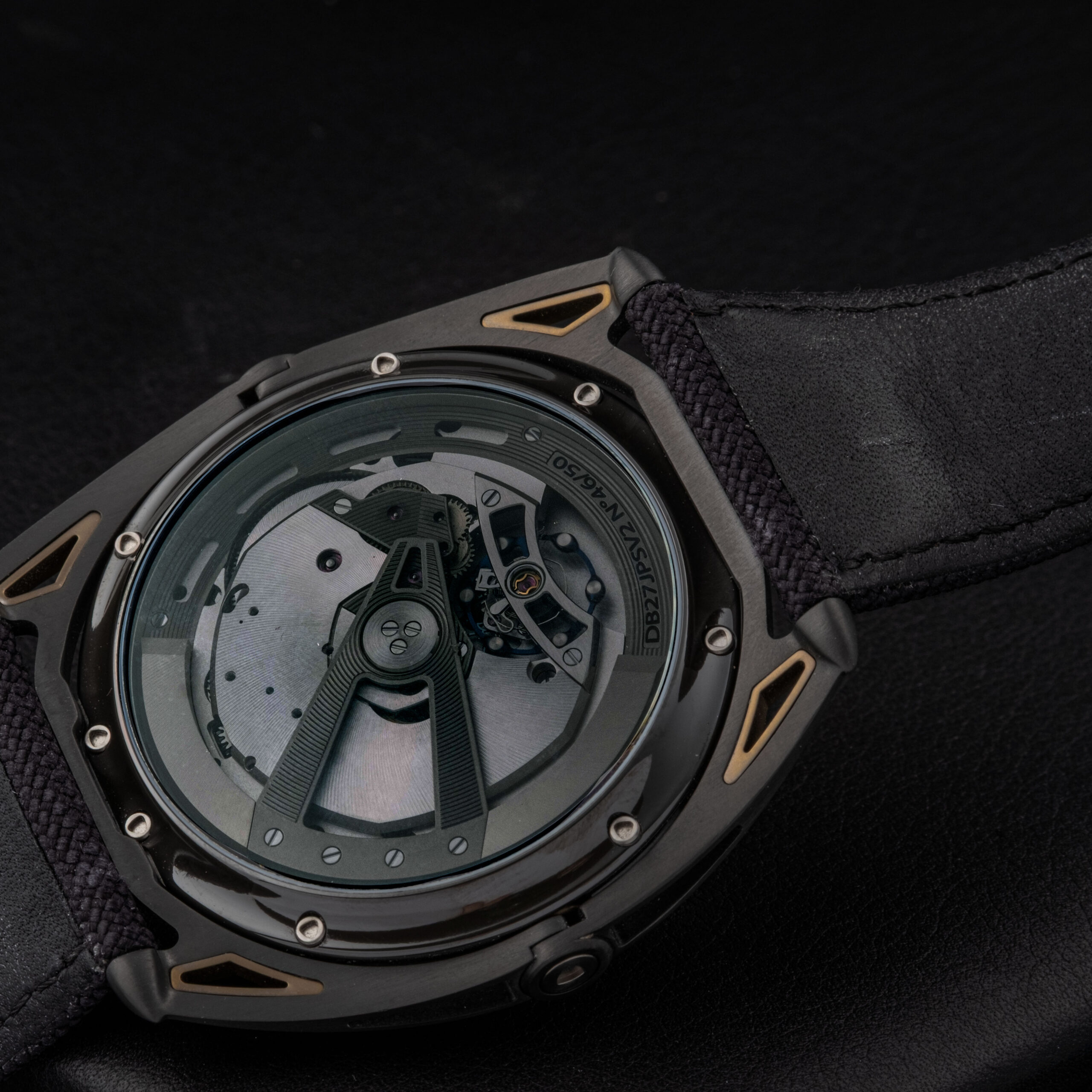 The De Bethune DB27 Titan Hawk V2 JPS represents a striking fusion of contemporary haute horlogerie and motorsport-inspired design. Produced in a modern limited configuration, this reference pays tribute to the legendary John Player Special livery through its distinctive black and gold aesthetic. De Bethune’s avant-garde approach to watchmaking is fully expressed in this model, combining technical innovation, lightweight materials, and a highly architectural case construction with floating lugs engineered for optimal wrist comfort.