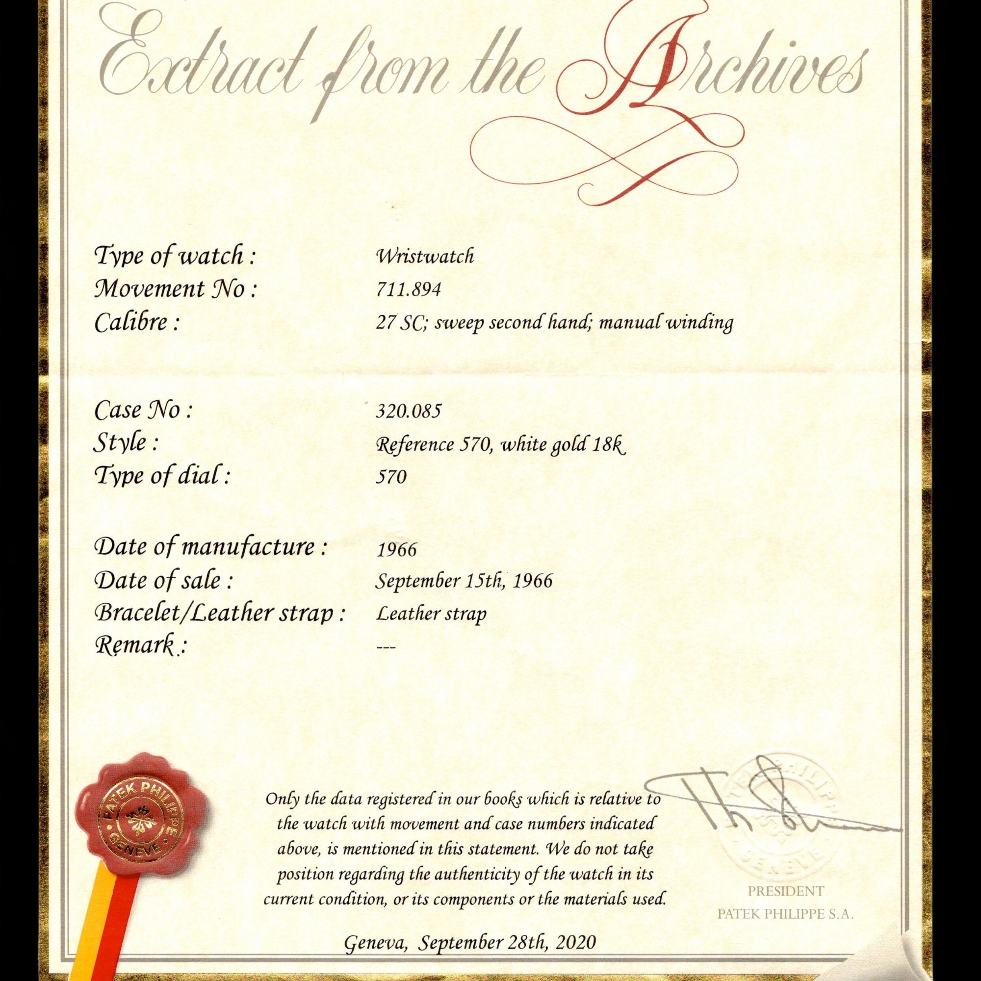 Accessories: Certificate of Archives from Patek