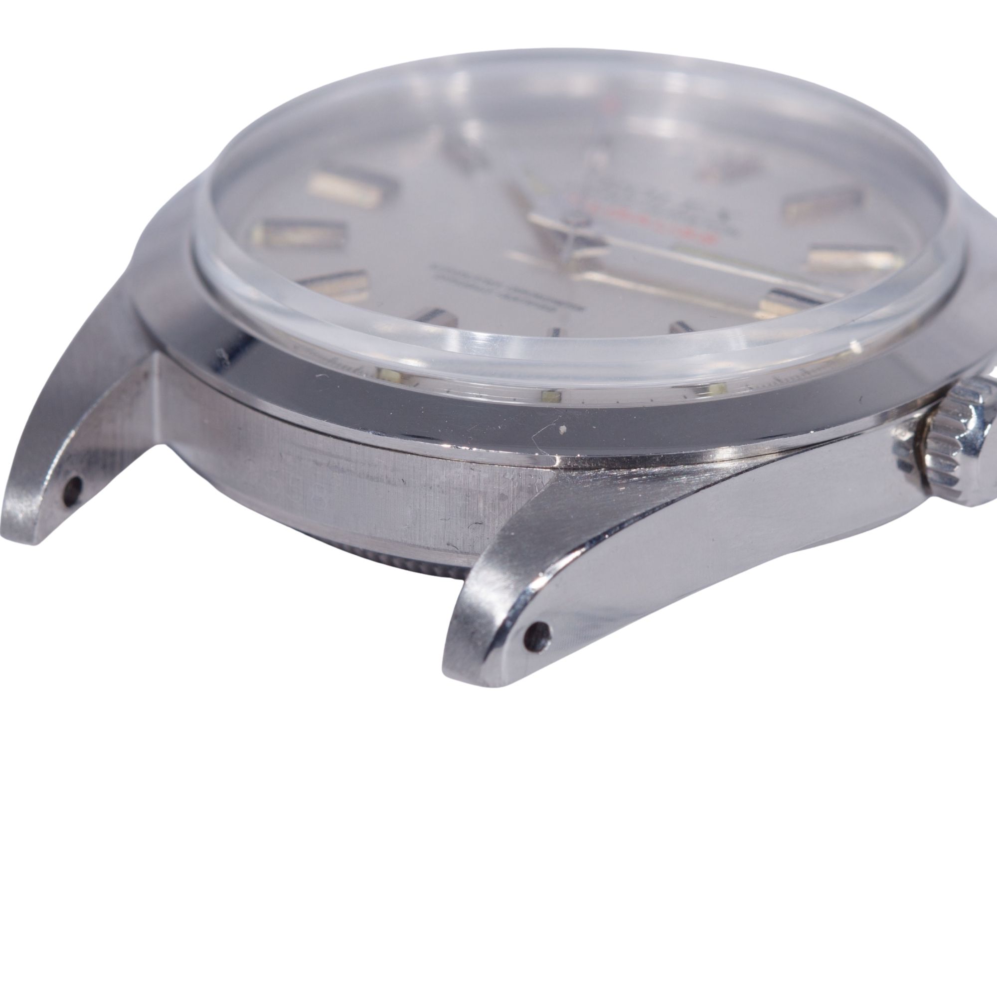 The smooth steel bezel remains crisp, with surfaces and geometry fully coherent with the case architecture. The watch is fitted with its original Rolex Twinlock crown, operating precisely and correctly.